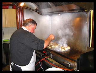La elaboración en una pequeña plancha situada al fondo del local , no tiene desperdicio y es tan artesanal como tradicional.