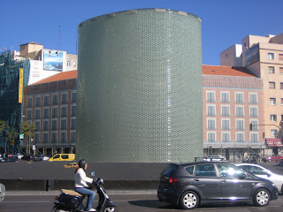 La parte exterior de la construcción ,es parecida a un cilindro , construido en cristal.Hace casi 10 metros de diámetro por 11 de altura.