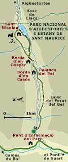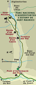 Este camino de dificultad sencilla , transcurre por una zona boscosa y húmeda del parque.La ruta, va paralela al río Sant Nicolau y tiene su cúspide en el estanque de la Llebreta.