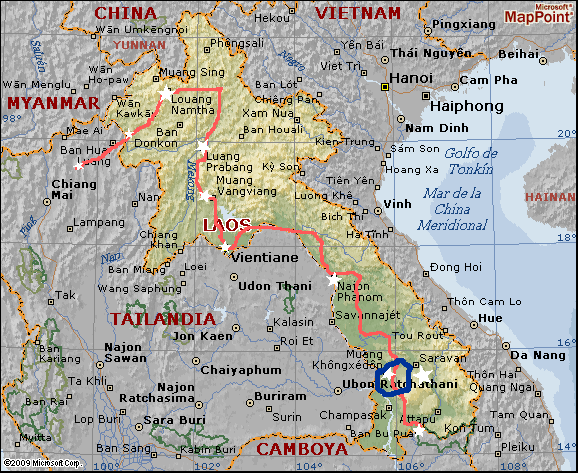 Si cruzamos al revés podremos gozar de una ubicación privilegiada en Laos, en plena Meseta del Bolaven, con capital en Pakse, desde donde poder descubrir la magia del sur a través del Bolaven y las 4000 islas, o bien adentrarse en el Laos mas colonial y cultural.