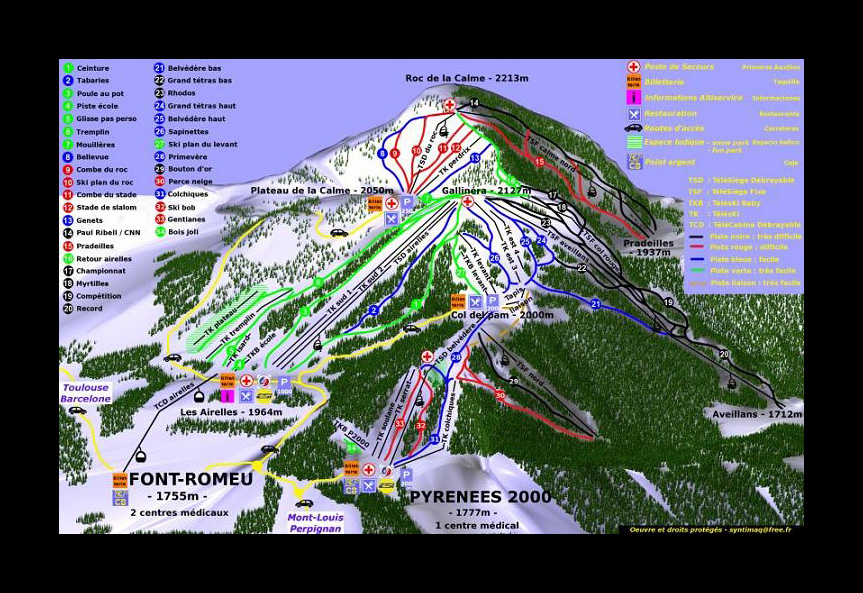 Estas estaciones de esquí pertenecientes al departamento de pirineos orientales , están ubicadas en la zona de los pirineos catalanes o Catalunya Nord.
